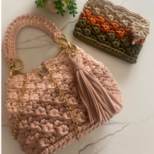 Bag Veneza confeccionada em fio de Poliéster ( ensino em 3mm e 5mm). O resultado será duas peças em tamanhos diferentes.