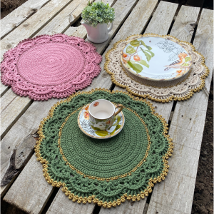 Sousplat confeccionado em fio Náutico, podendo ser adaptado para outros fios, como Malha ou Poliéster.