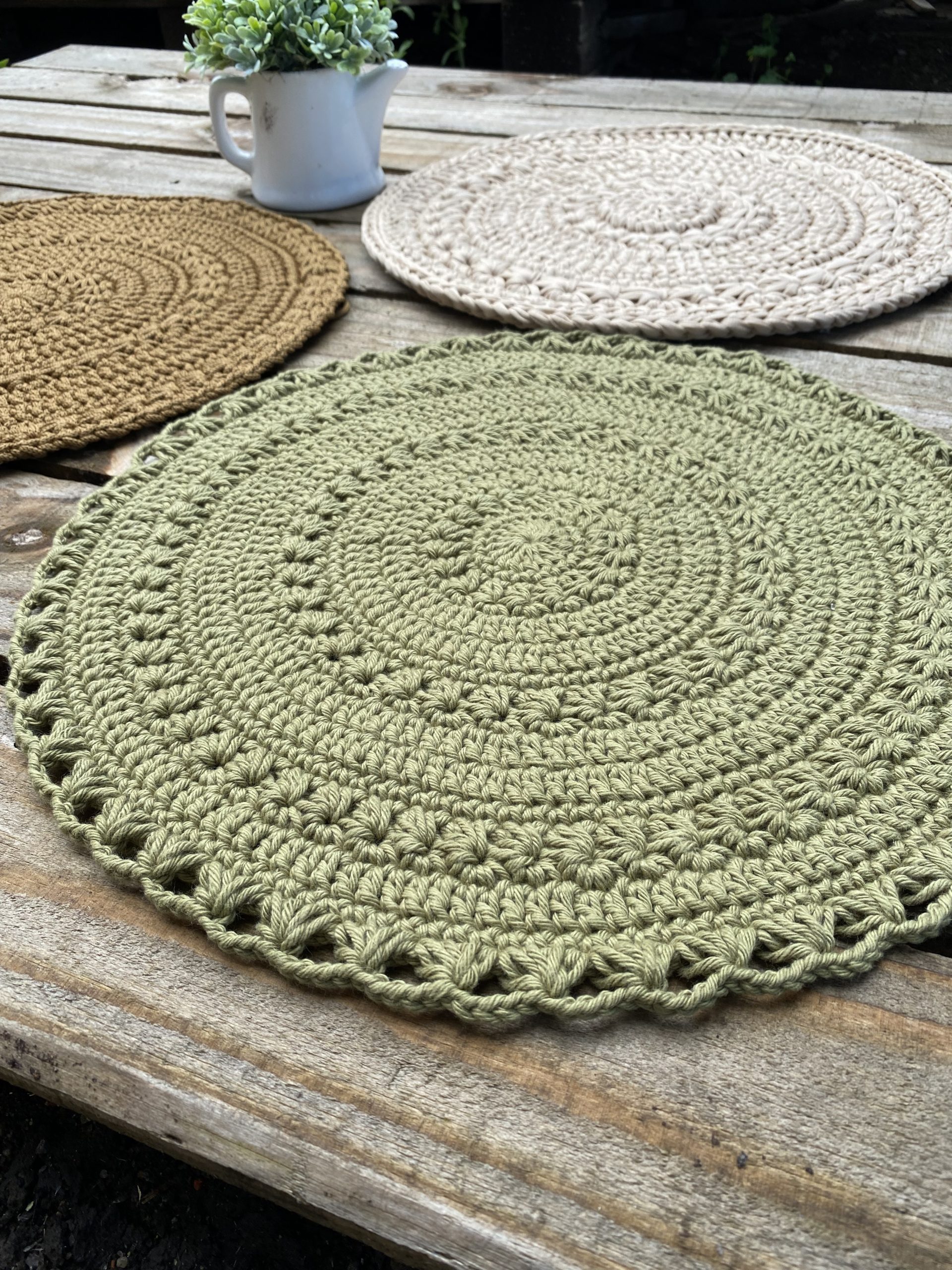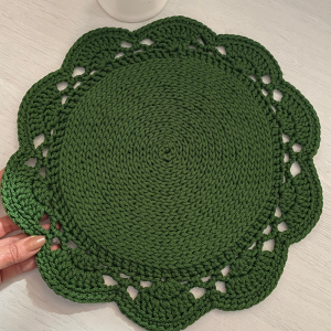 Sousplat confeccionado em fio de Malha, podendo ser adaptado para outros fios, como Poliéster ou Nautico.