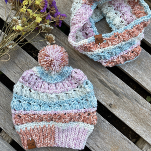 Combo super charmoso composto da Gola e do Gorro, ideal para ser confeccionado com fios mais grossos.