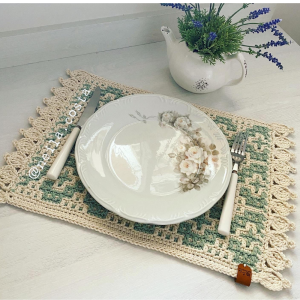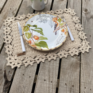 Sousplat confeccionado em fio de Malha, podendo ser adaptado para outros fios, como Poliéster ou Nautico.