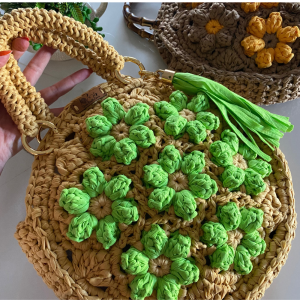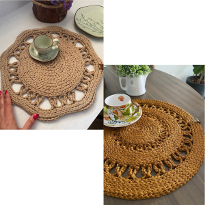 Sousplat confeccionado em fio de Poliéster, podendo ser adaptado para outros fios, como Malha ou Nautico.