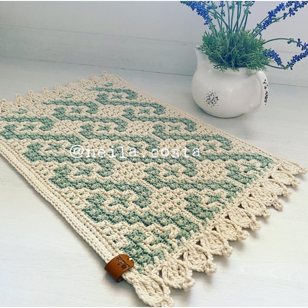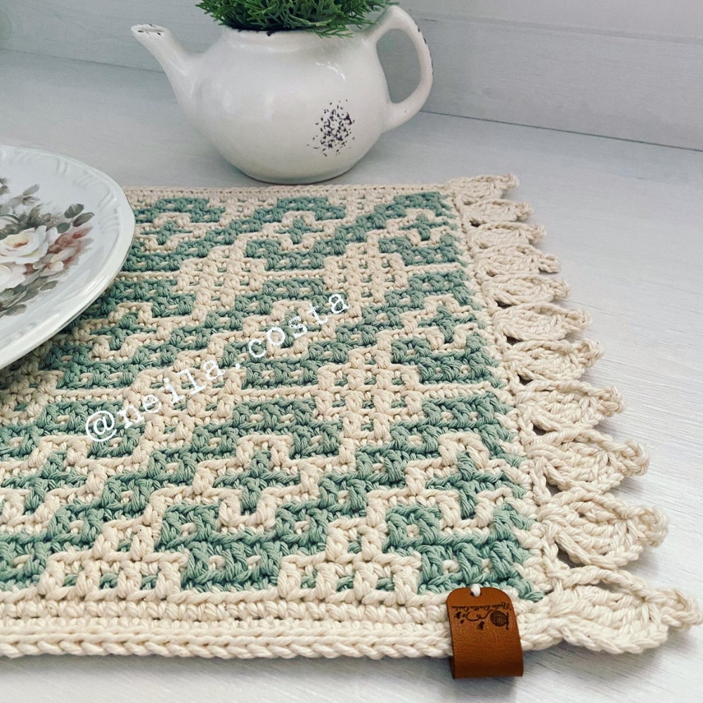 Sousplat confeccionado em fio de Malha, podendo ser adaptado para outros fios, como Poliéster ou Nautico.